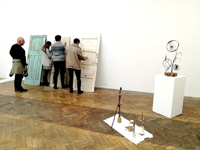 These are materials that can be burnt out in the furnace, to visually illustrate to the audience the bronze casting process. Alongside these, 3 doors found in a skip in Bristol lent up against the wall, onto which the audience were invited to carve for as little or as long as they wanted, again collectivly adding value to the discarded.